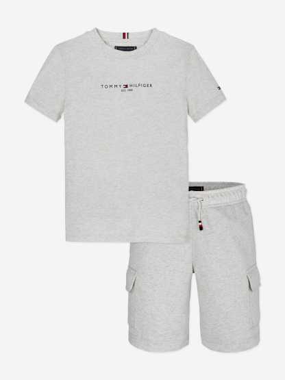 Tottgmmy Hilfigttger Boys T-Shirt and Cargo Short Set in Grey