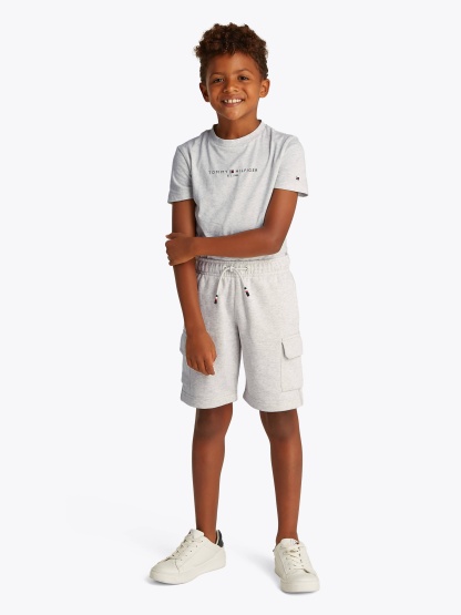Elevate your little gentleman's wardrobe with the Tommy Hilfiger Boys T-Shirt and Cargo Short Set in chic grey. Perfect for SS2025, this ensemble blends sophisticated design with youthful exuberance. Key features include: