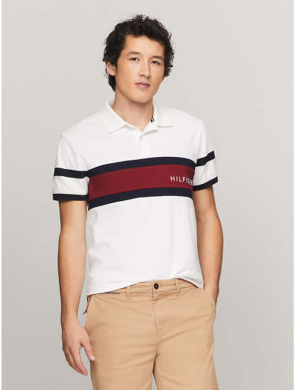 Tommy Hilfiger men's polo. What we do best, our pique cotton polo, cut in an easy fit, featuring our colorblock flag across the chest and sleeves. Material - 100% Regenerative Cotton.